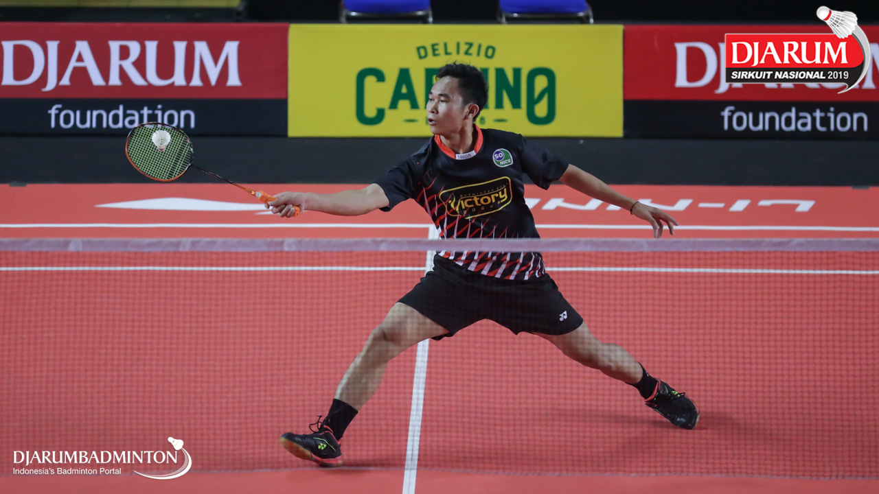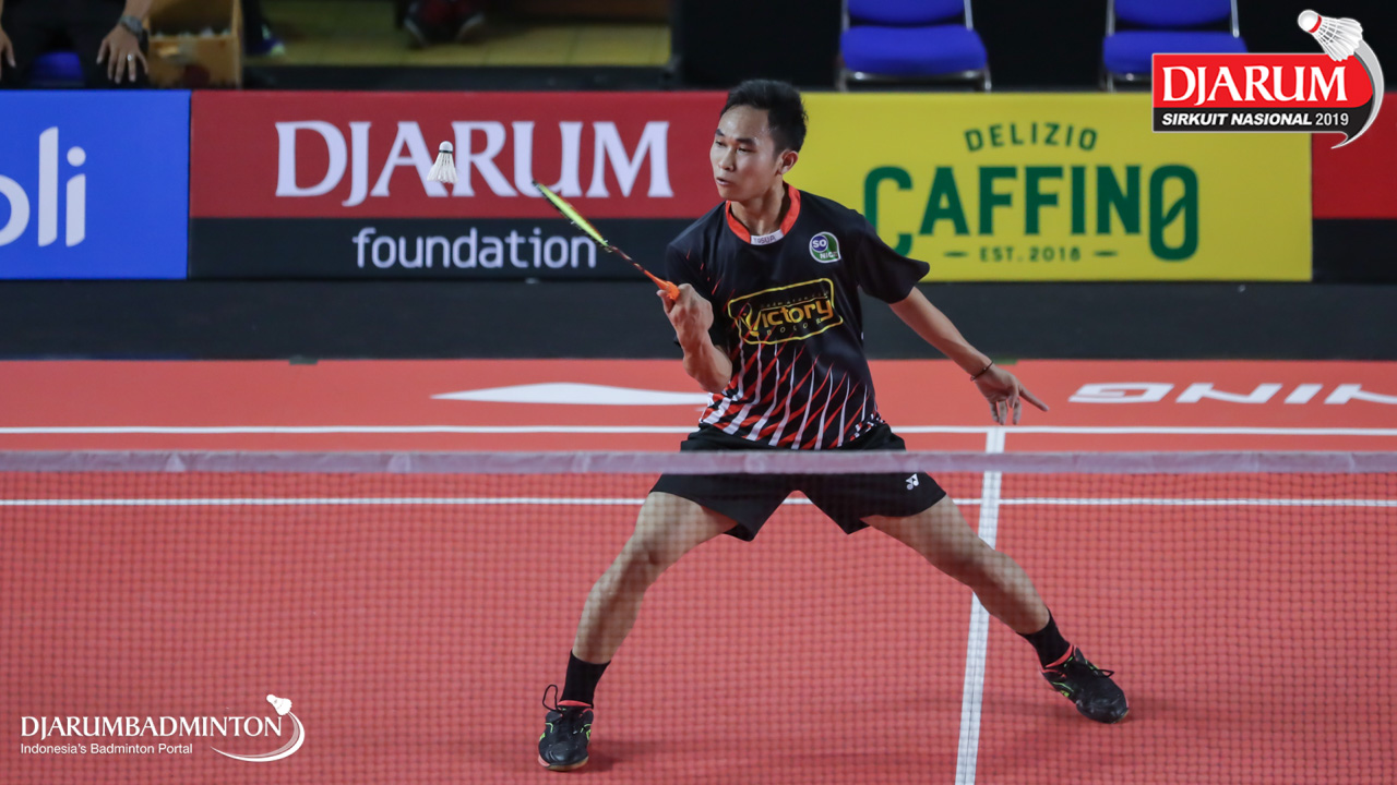 Yosua (PB Victory Bogor, Jaktim) menyambut shuttlecock