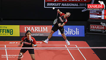 Alan Darmasaputra Kristanto+Sang Ayu Putu Kharisma Maharani (PB Djarum, Kudus) melepaskan serangan