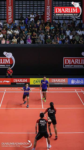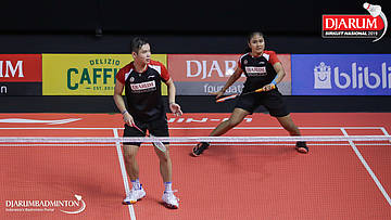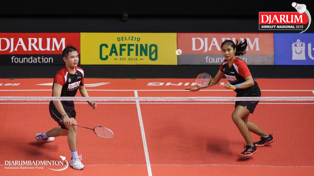 Alan Darmasaputra Kristanto+Sang Ayu Putu Kharisma Maharani (PB Djarum, Kudus) bersiap menyambut shuttlecock