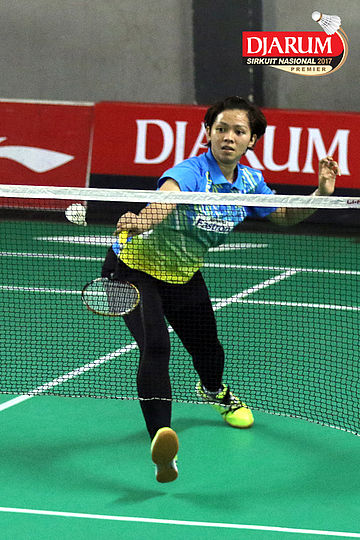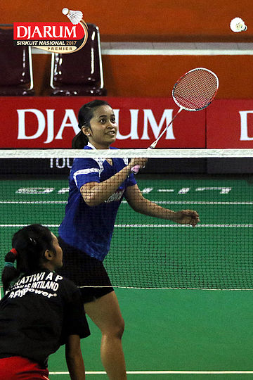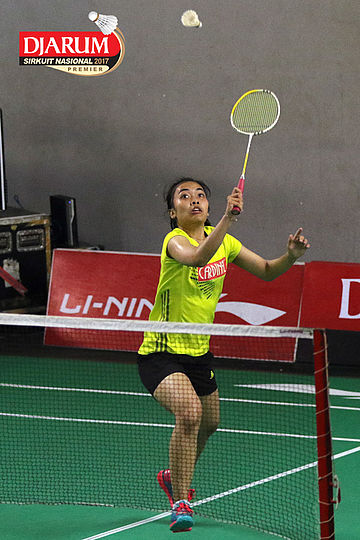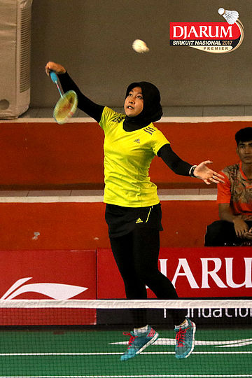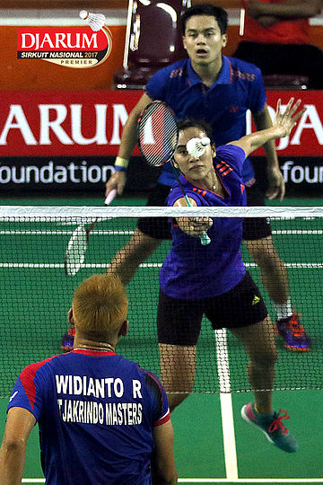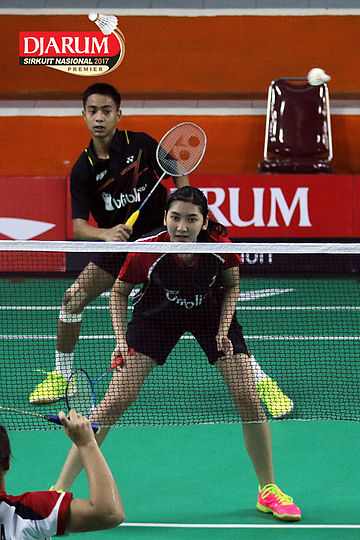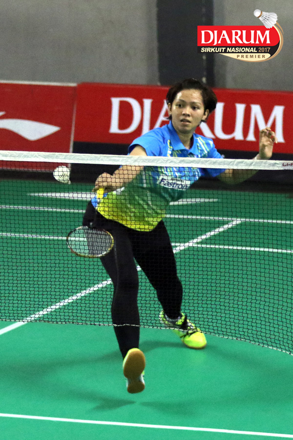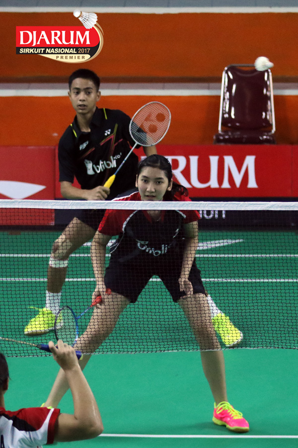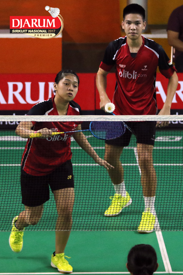 Rahmat Hidayat/Shelandry Vyola (Djarum Kudus) Mengembalikan Shuttlecock