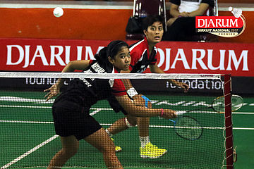 Aldira Rizki/Fauzia Kartikasari (Djarum Kudus) Mengembalikan Shuttlecock