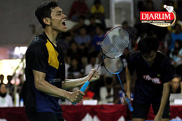 Daniel Marthin/Leo Rolly (Djarum Kudus) Mengembalikan Shuttlecock