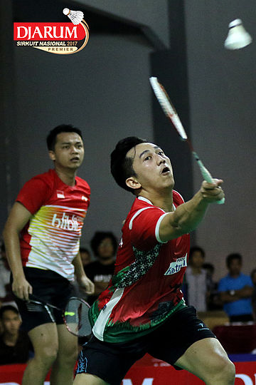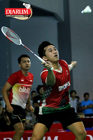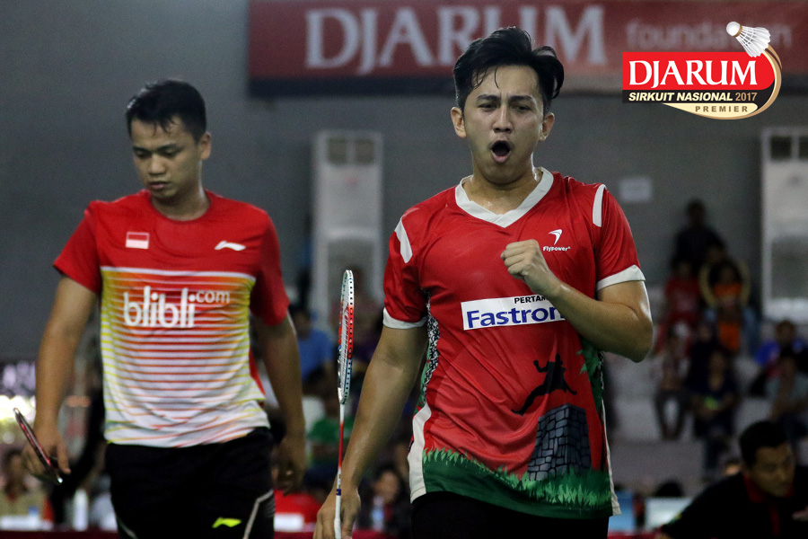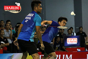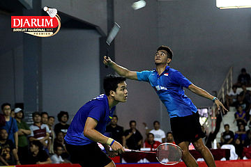 M. Fachrikar/Reza Dwi Cahya (Jaya Raya) Mengembalikan Shuttlecock