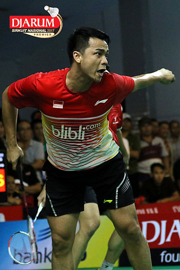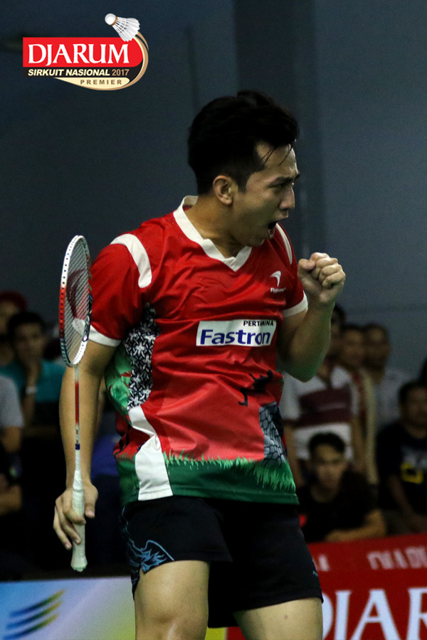 Selebrasi Rizko Asuro (Pertamina Fastron) Mengembalikan Shuttlecock