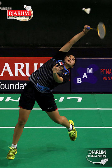Silvi Wulandari (Djarum Kudus) melepaskan serangan