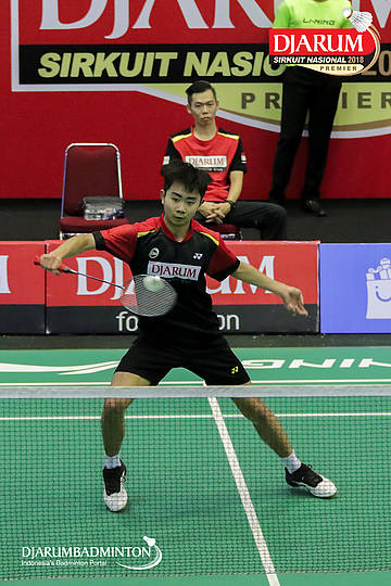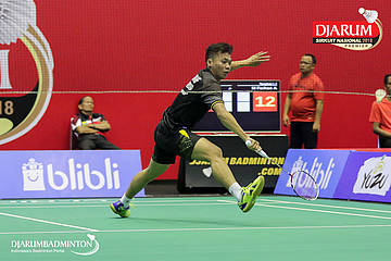 Alberto Alvin Yulianto (PB Djarum, Kudus) mengembalikan shuttlecock