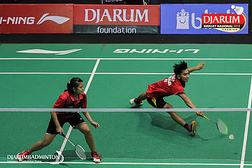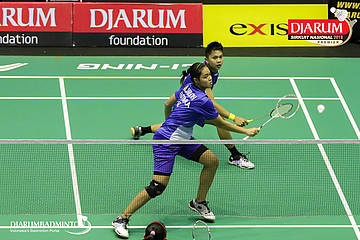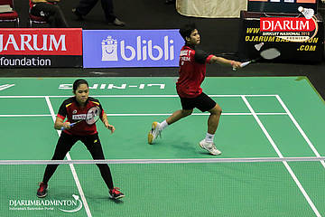 Yoggi Pamungkas dan Fauzia Kartikasari (PB Djarum, Kudus) mengembalikan serangan