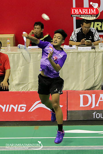 Jovi Michael (Focus Badminton Club, Jaksel) bersiap menyambut serangan