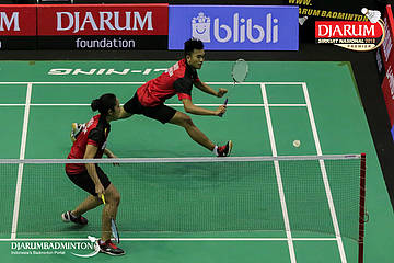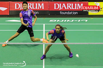 Naufal Ligo Saufik dan Ayu Gary Luna Maharani (PB Djarum, Kudus) berusaha melakukan pengembalian