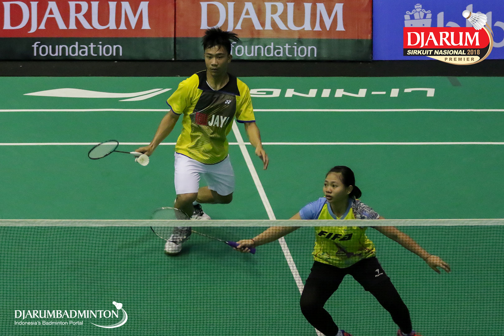 Ferdian Mahardika Ranialdy dan Annisa Mubarokah (Jaya Raya Jakarta, Jakpus+Fifa BC Sidoarjo) berusaha melakukan pengembalian