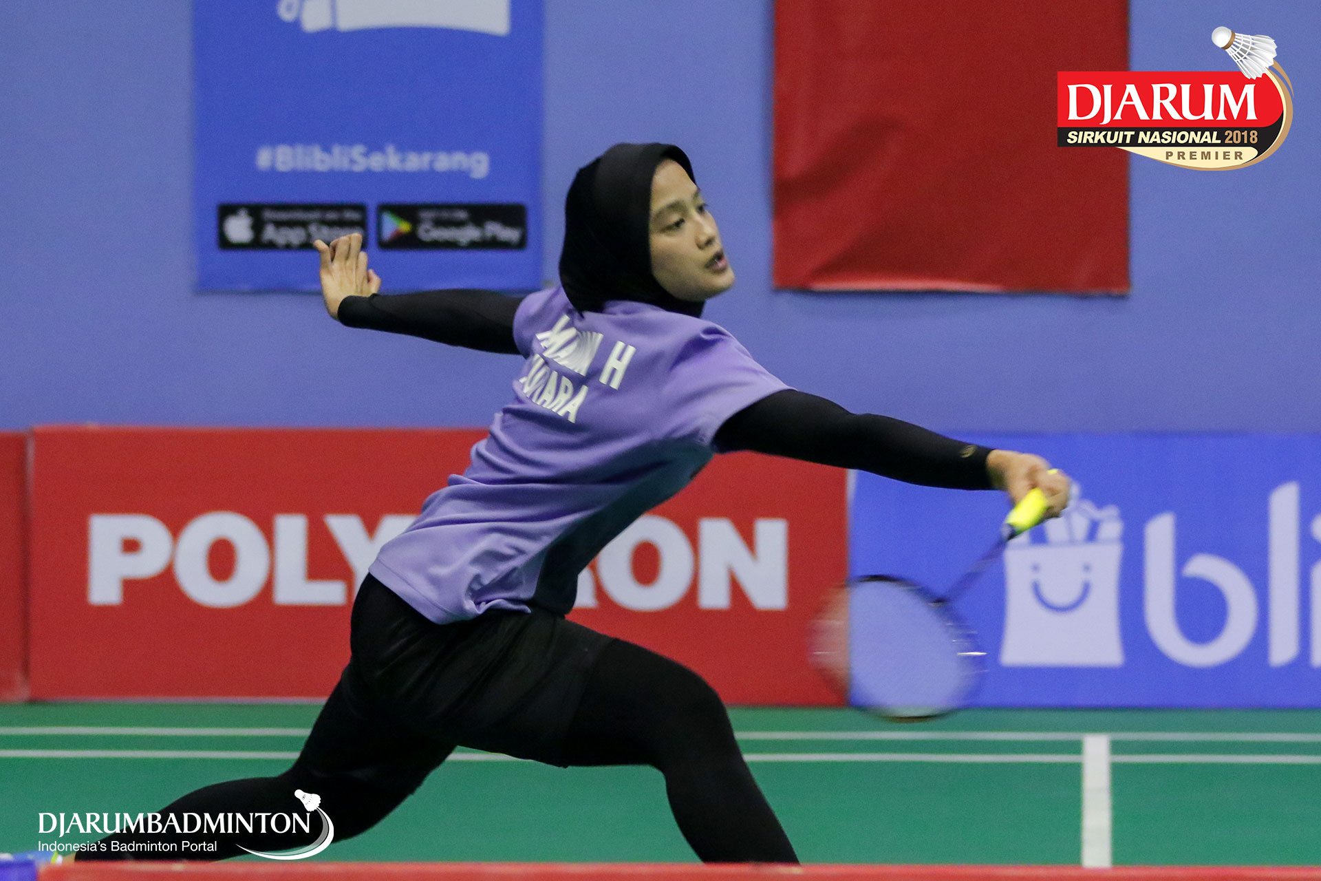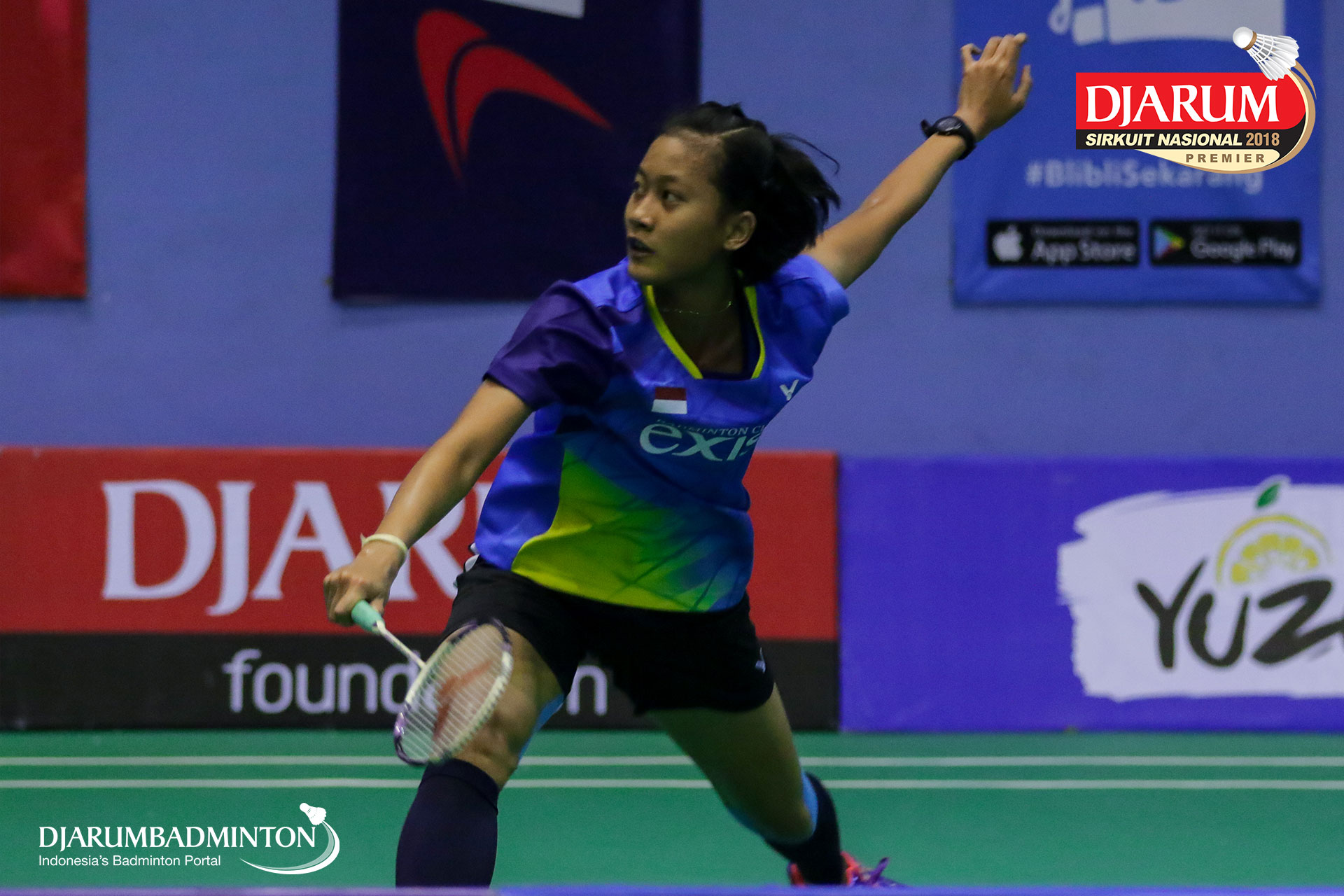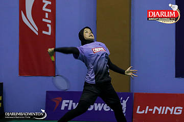 Yasnita Enggira Setiawan (Exist, Jakarta) bersiap menyambar pengembalian