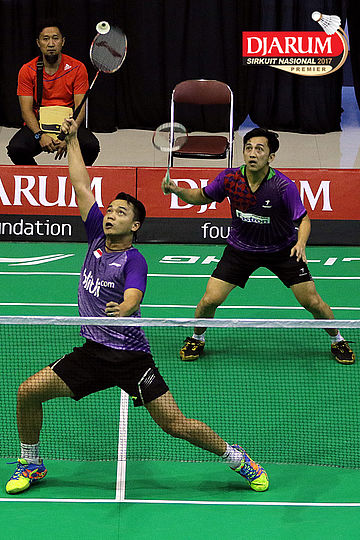 Hendra Aprida Gunawan/Rizko Asuro (Djarum Kudus/Pertamina Fastron) Menyambar Pengembalian