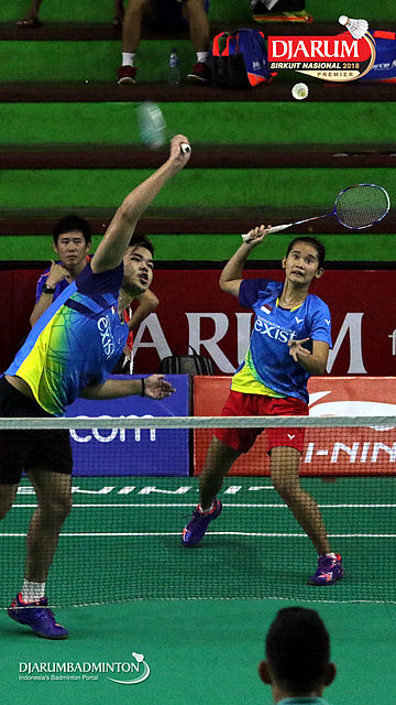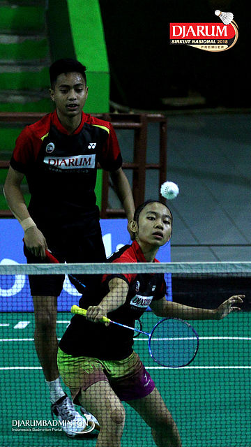 Muh. Putra Erwiansyah/Febi Setianingrum (PB Djarum Kudus) Mengembalikan Shuttlecock