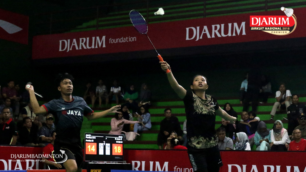 Muhammad Juan Elgiffani/Windi Siti Mulyani (PB Victory Bogor) Menghadang Serangan