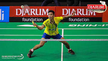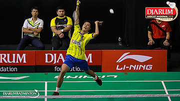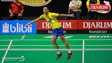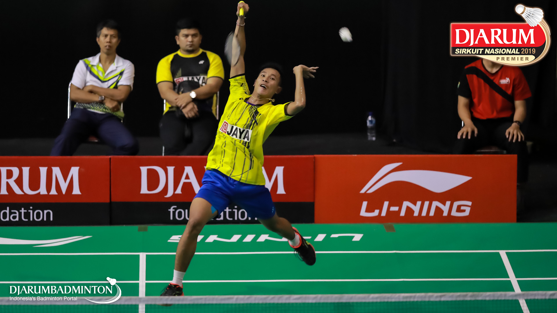 Nyoman Tryadnya Arya Kurniawan (Jaya Raya Jakarta) bersiap menyambut shuttlecock