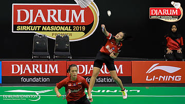 Amalia Cahaya Pratiwi+Febriana Dwipuji Kusuma (Pelatnas) bersiap menyambar shuttlecock