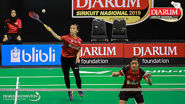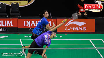 Amalia Cahaya Pratiwi+Febriana Dwipuji Kusuma (Pelatnas) melepaskan serangan