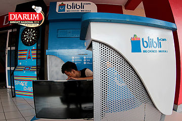 Dua Orang Pekerja Sedang Mempersiapkan Perangkat Logistik Djarum Sirkuit Nasional Premier Li-Ning Jawa Tengah Open 2018 Di Booth Blibli.com