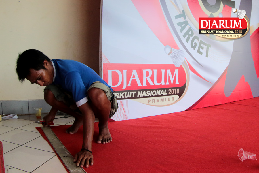 Salah Satu Petugas Saat Mempersiapkan Perangkat Logistik Djarum Sirkuit Nasional Premier Li-Ning Jawa Tengah Open 2018