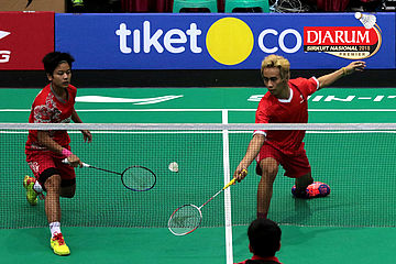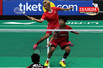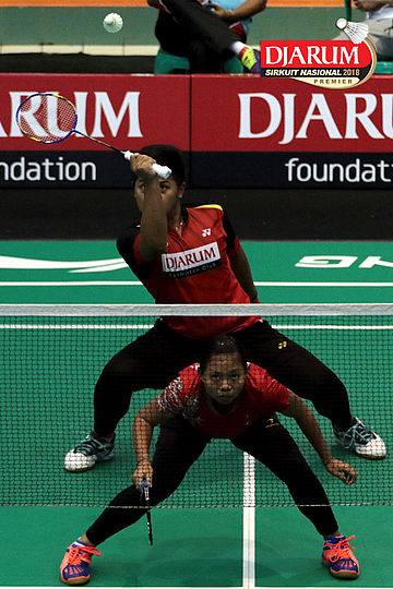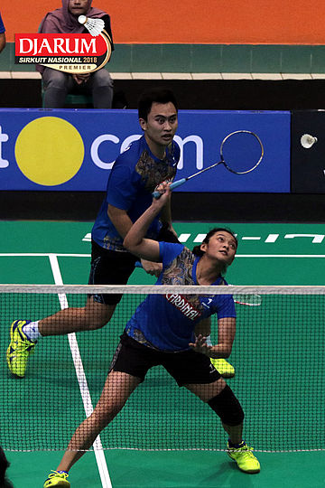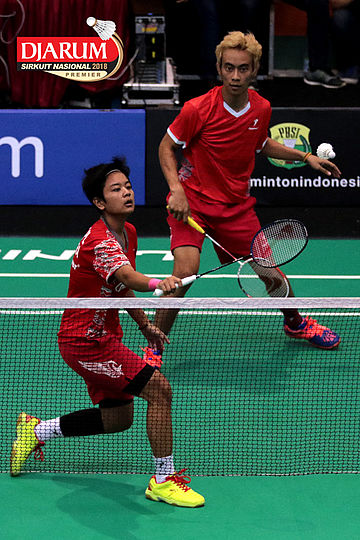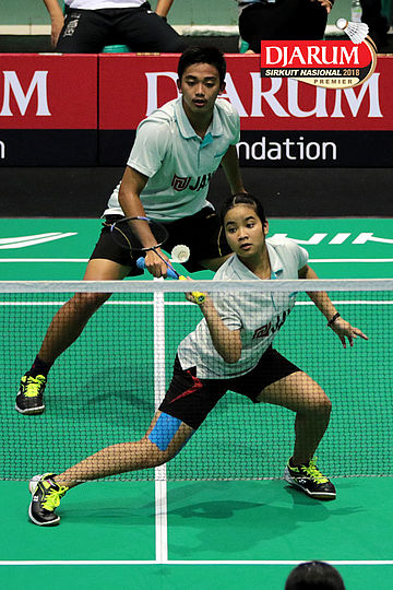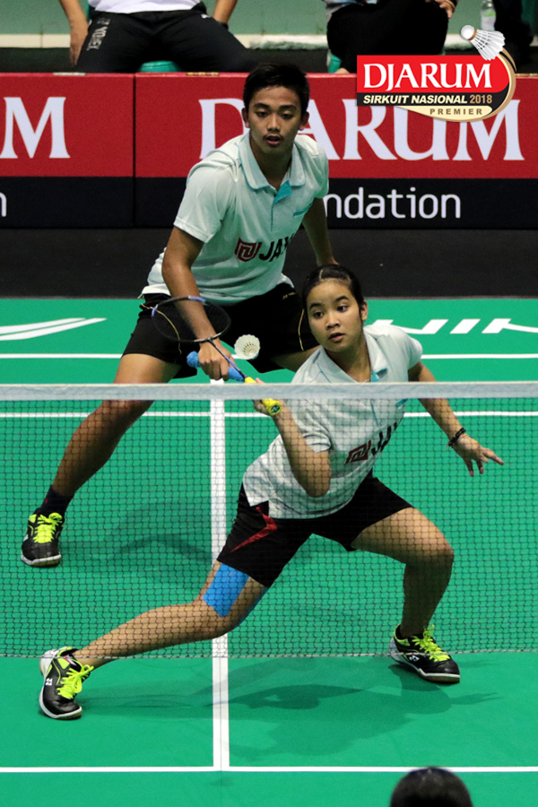 Lukhi Apri Nugroho/Ririn Amelia (Berkat Abadi/PB Djarum Kudus) Menghadang Serangan