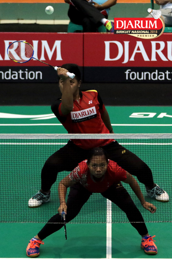 Agripina Primarahmanto Putera/Nisak Puji Lestari (Berkat Abadi/Mutiara Cardinal) Mengembalikan Shuttlecock