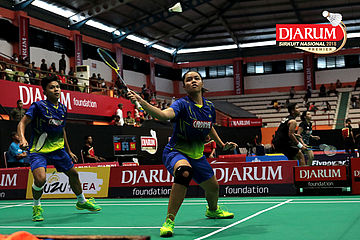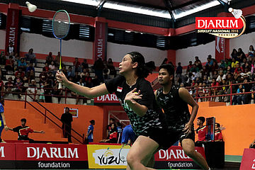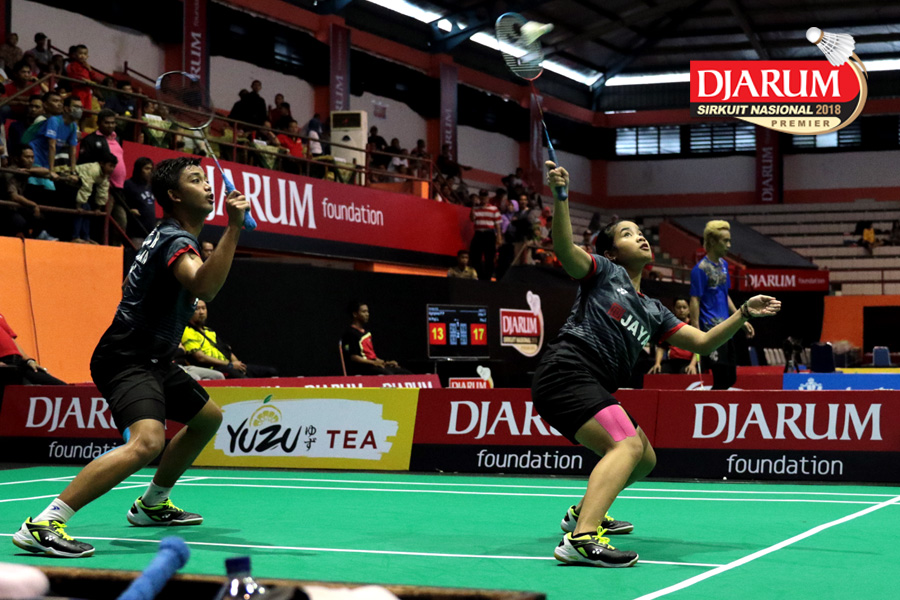 Irfan Fadhillah/Pia Zebadiah Bernadet (Jaya Raya) Mengembalikan Shuttlecock