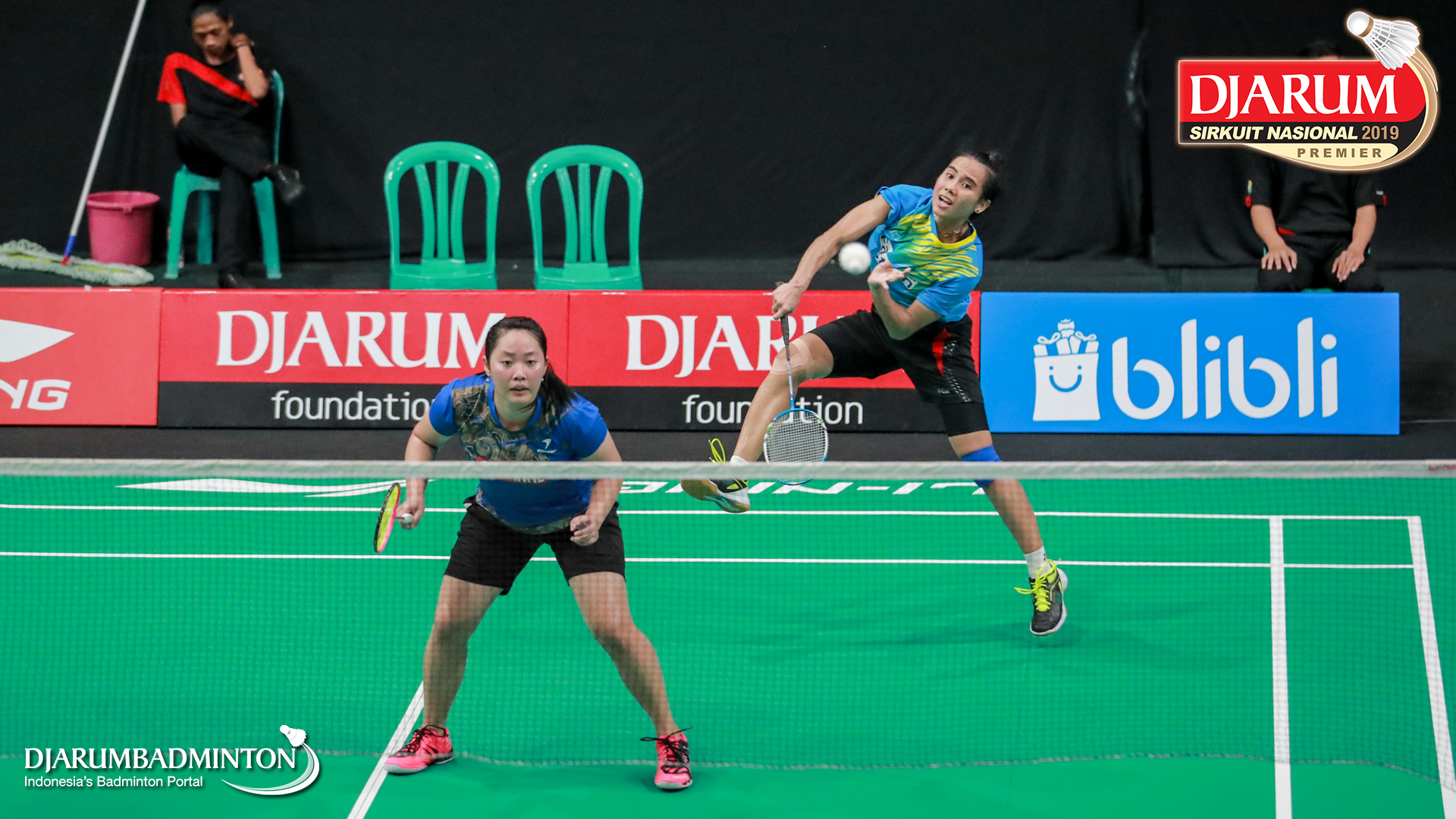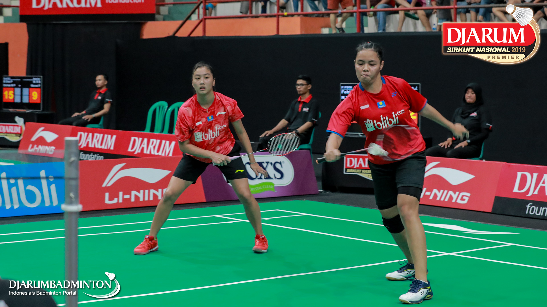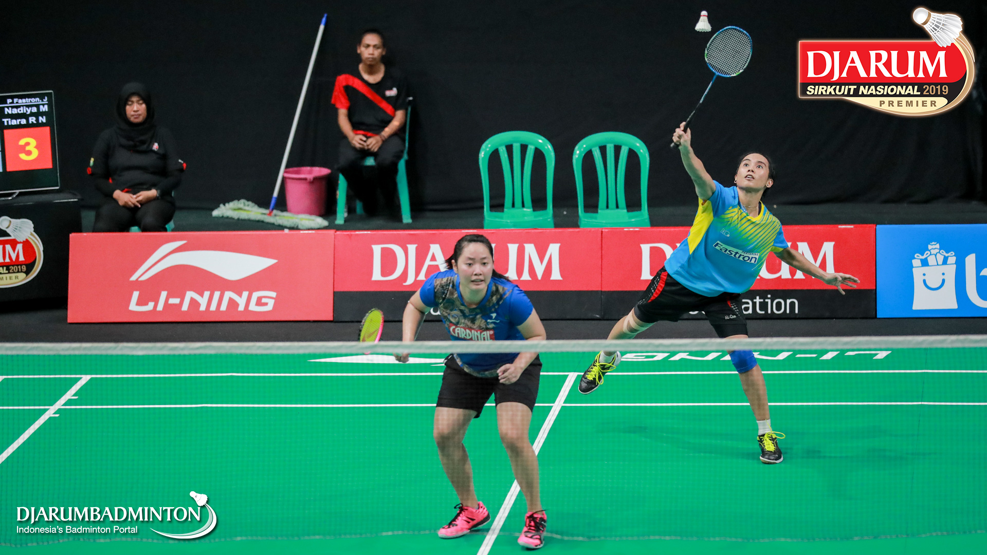 Nadiya Melati+Tiara Rosalia Nuraidah (Pertamina Fastron, Jakut+Mutiara Cardinal, Bandung) menyambar pengembalian