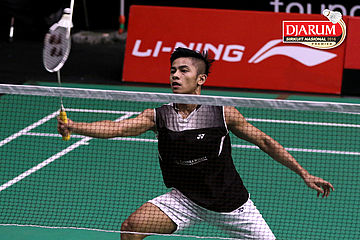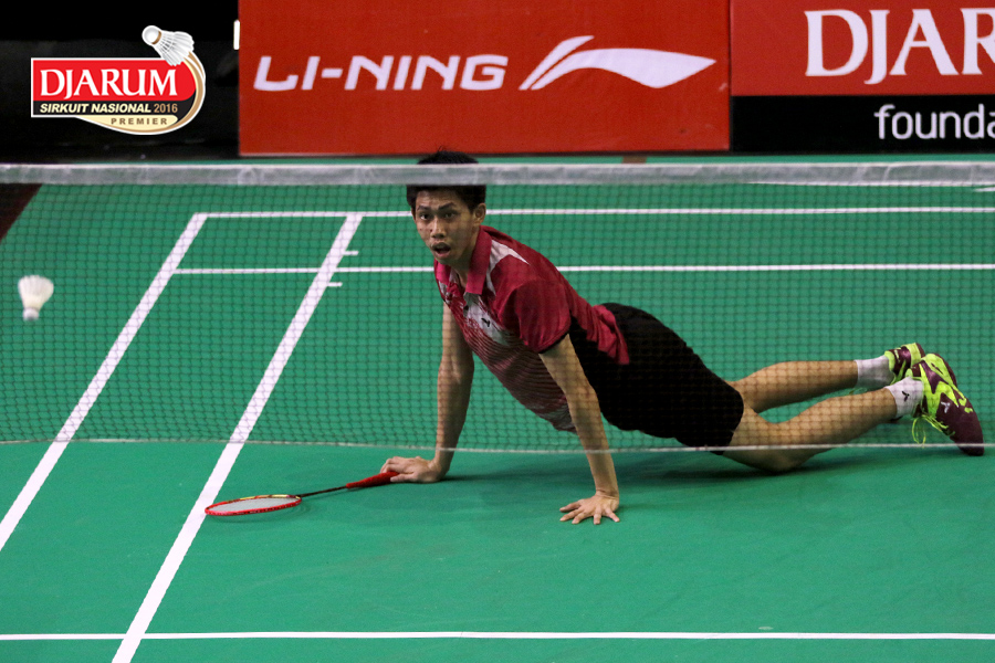 Aldo Oktaviano (Singapura) Terjauh Saat Mengembalikan Shuttlecock.