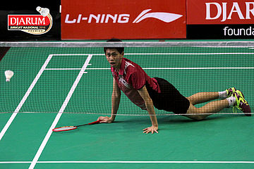 Handoko Yusuf (Djarum Kudus) Mengembalikan Shuttlecock.