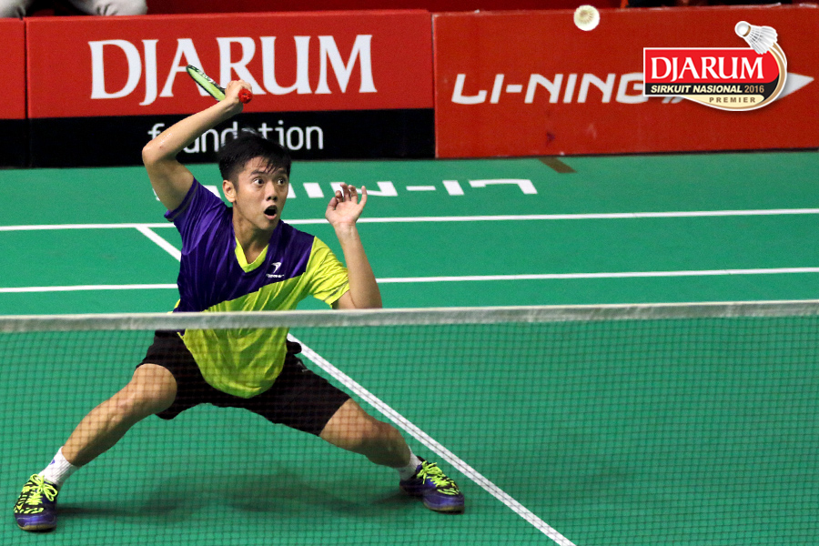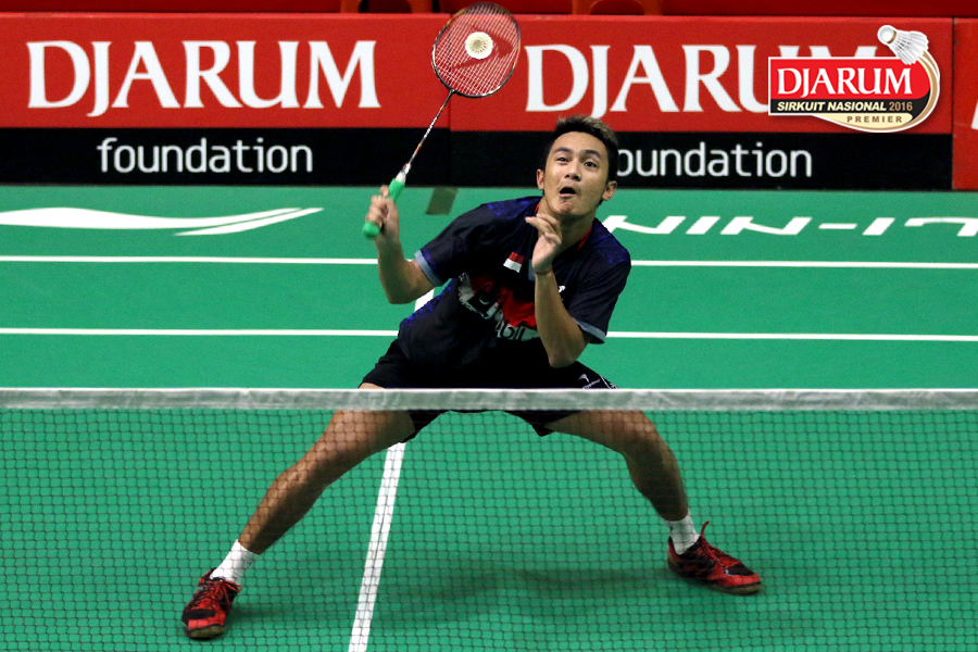 Dionysius Hayom Rumbaka (Djarum Kudus) Mengembalikan Shuttlecock.