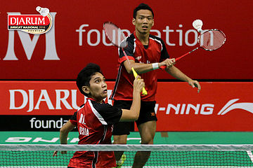 Lukhi Apri/Ririn Amelia (Djarum Kudus) Mengembalikan Shuttlecock.