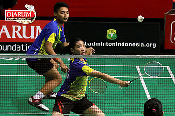 Tedi Supriadi/Della Augustia (Djarum Kudus) Menyambar Pengembalian Tanggung.