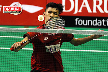 M. Aldo Apriyandi (Djarum Kudus) Melepaskan Smash.