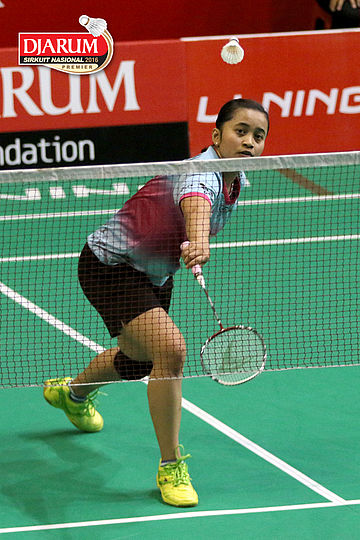 Hera Desi Ana (Mutiara Cardinal) Mengembalikan Shuttlecock.
