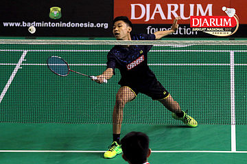Tri Cahya Suprianto (Djarum Kudus) Mengembalikan Shuttlecock