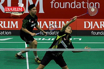 Rizko Asuro/Nadiya Melati (Pertamina Fastron) Mengembalikan Shuttlecock