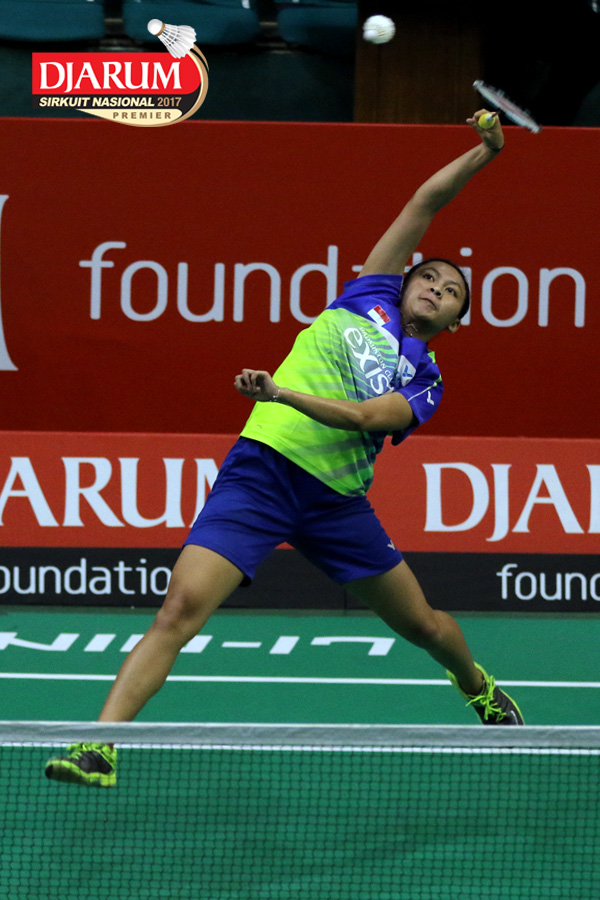 Melsya Nur Fitriani (Victory Bogor) Berusaha Menggapai Shuttlecock