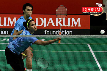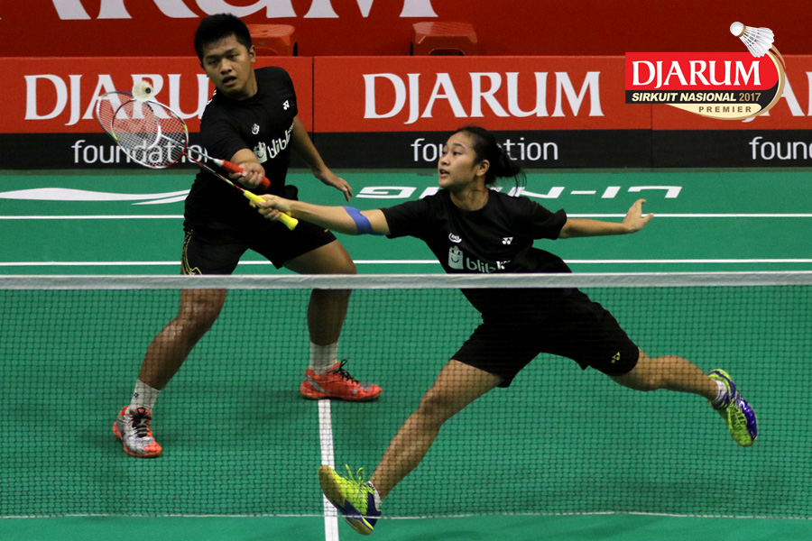 Rahmat Hidayat/Shelandry Vyola (Djarum Kudus) Mengembalikan Shuttlecock