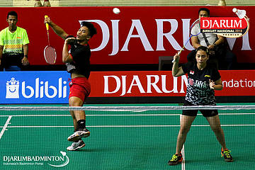 Reinard Dhanriano/Maretha Dea Giovani (Mutiara Cardinal, Bandung) menyambut serangan