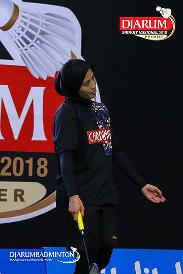 Sri Fatmawati (Jaya Raya Jakarta, Jakpus) bersiap mengembalikan shuttlecock