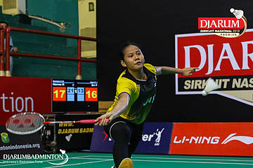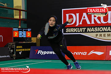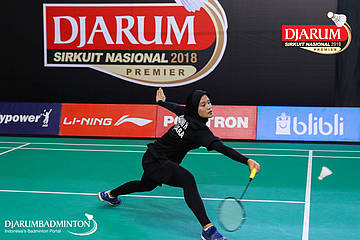 Sri Fatmawati (Jaya Raya Jakarta, Jakpus) bersiap menyambut shuttlecock