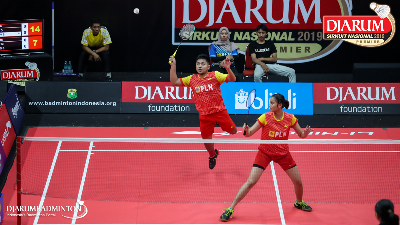 Abiyyu Fauzan Majid+Dinda Haura Salsabila Suhana (Sangkuriang Graha Sarana PLN Bandung) bersiap menyambar shuttlecock