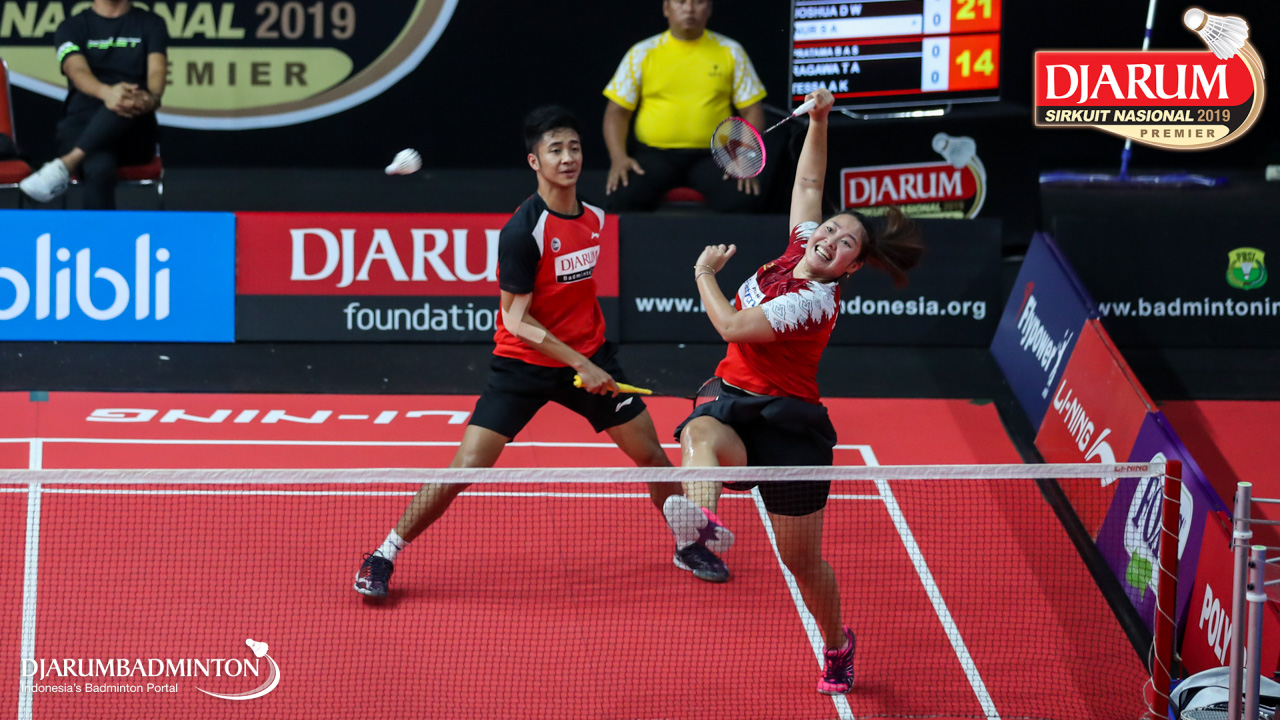 Yoggi Pamungkas+Khusnul Khatimah (PB Djarum, Kudus) mengembalikan shuttlecock