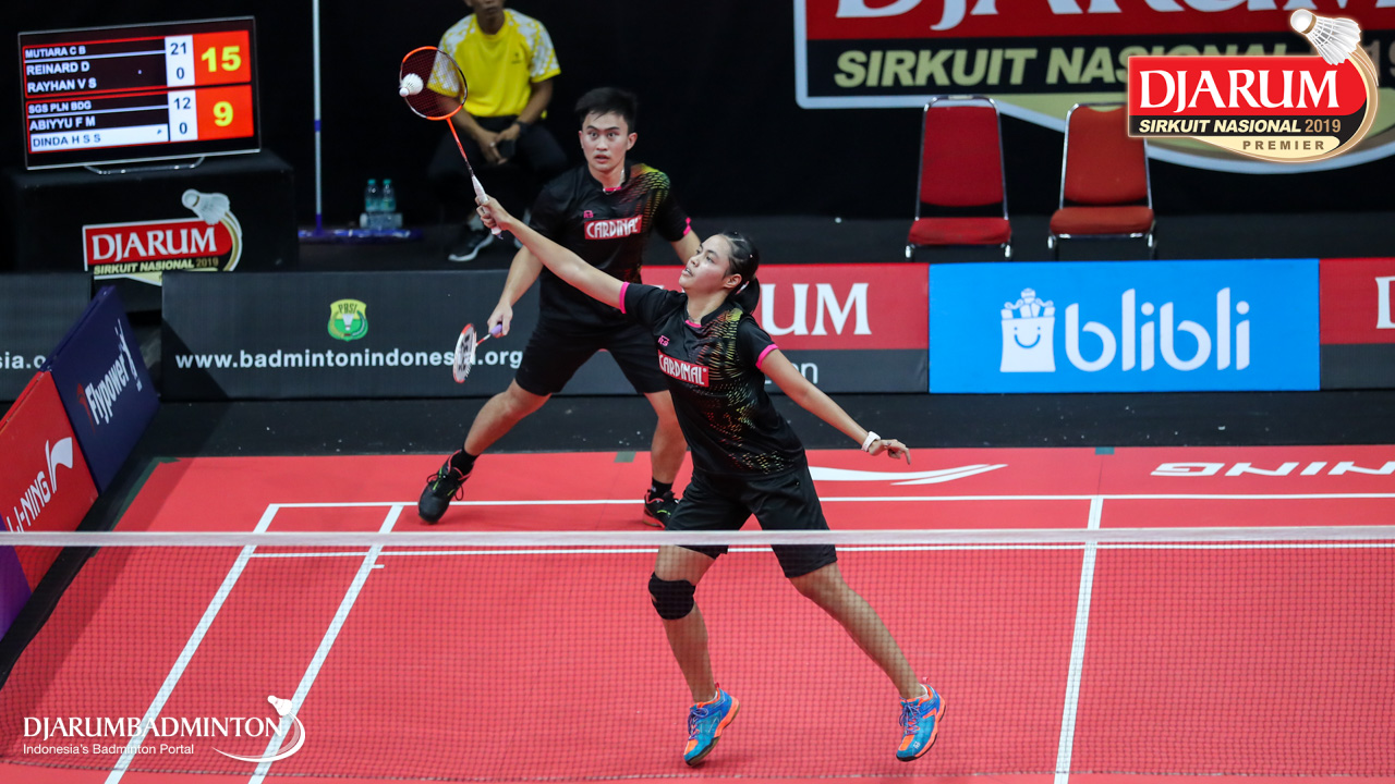 Abiyyu Fauzan Majid+Dinda Haura Salsabila Suhana (Sangkuriang Graha Sarana PLN Bandung) menyambut shuttlecock