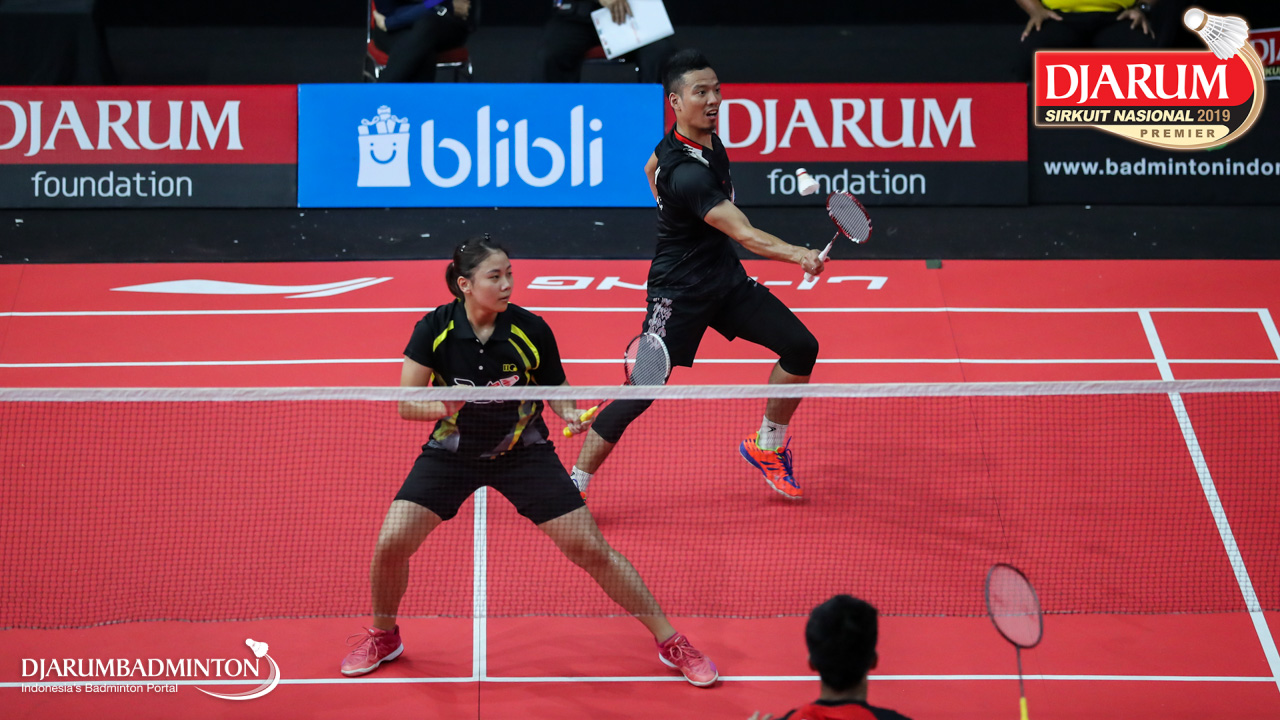 Dejan Ferdinansyah+Tiara Rosalia NURAIDAH (PB Djarum, Kudus+Pertamina Fastron, Jakut) mengembalikan shuttlecock