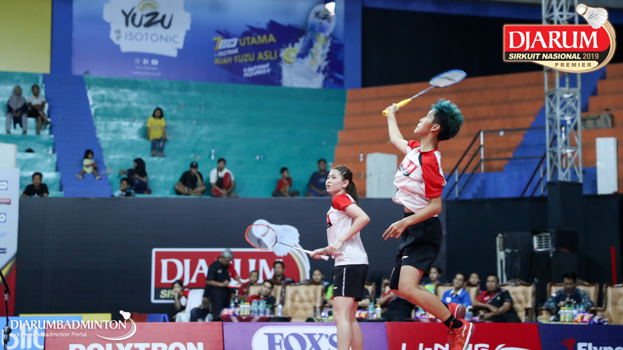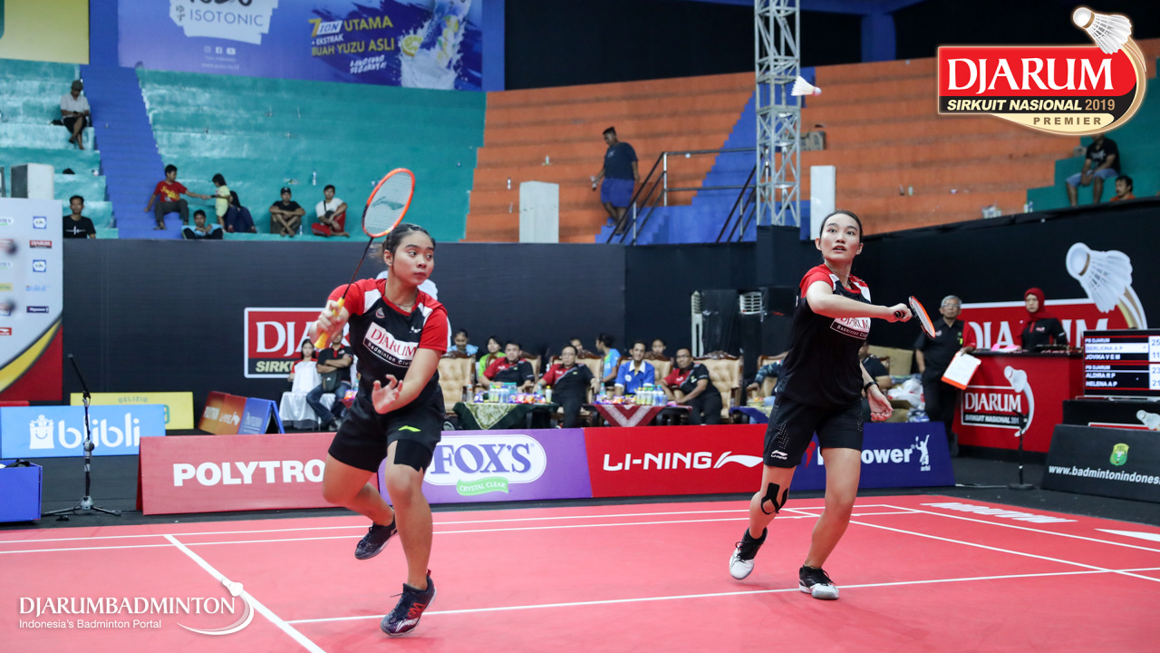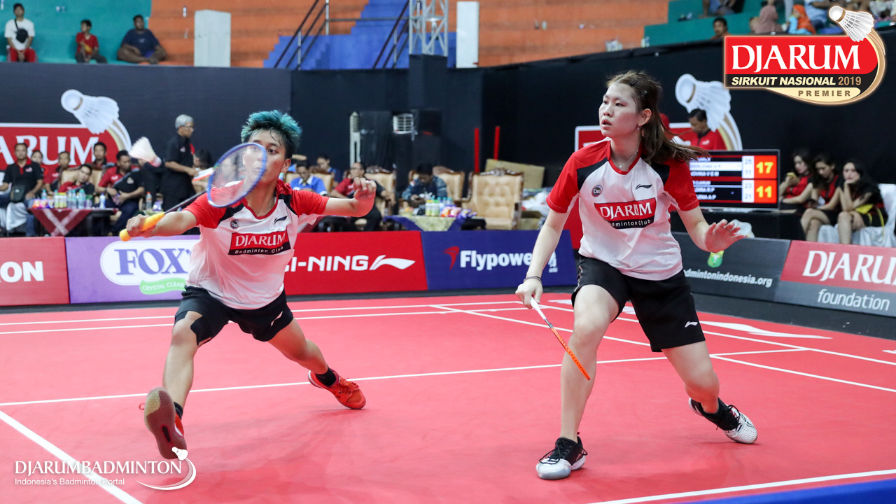 Berliona Alma Pradisa+Jovika Vandaria Ester Matiho (PB Djarum, Kudus) menyambar pengembalian