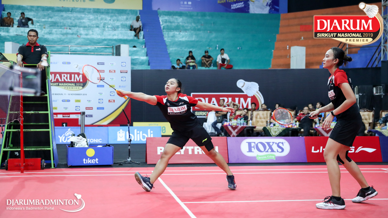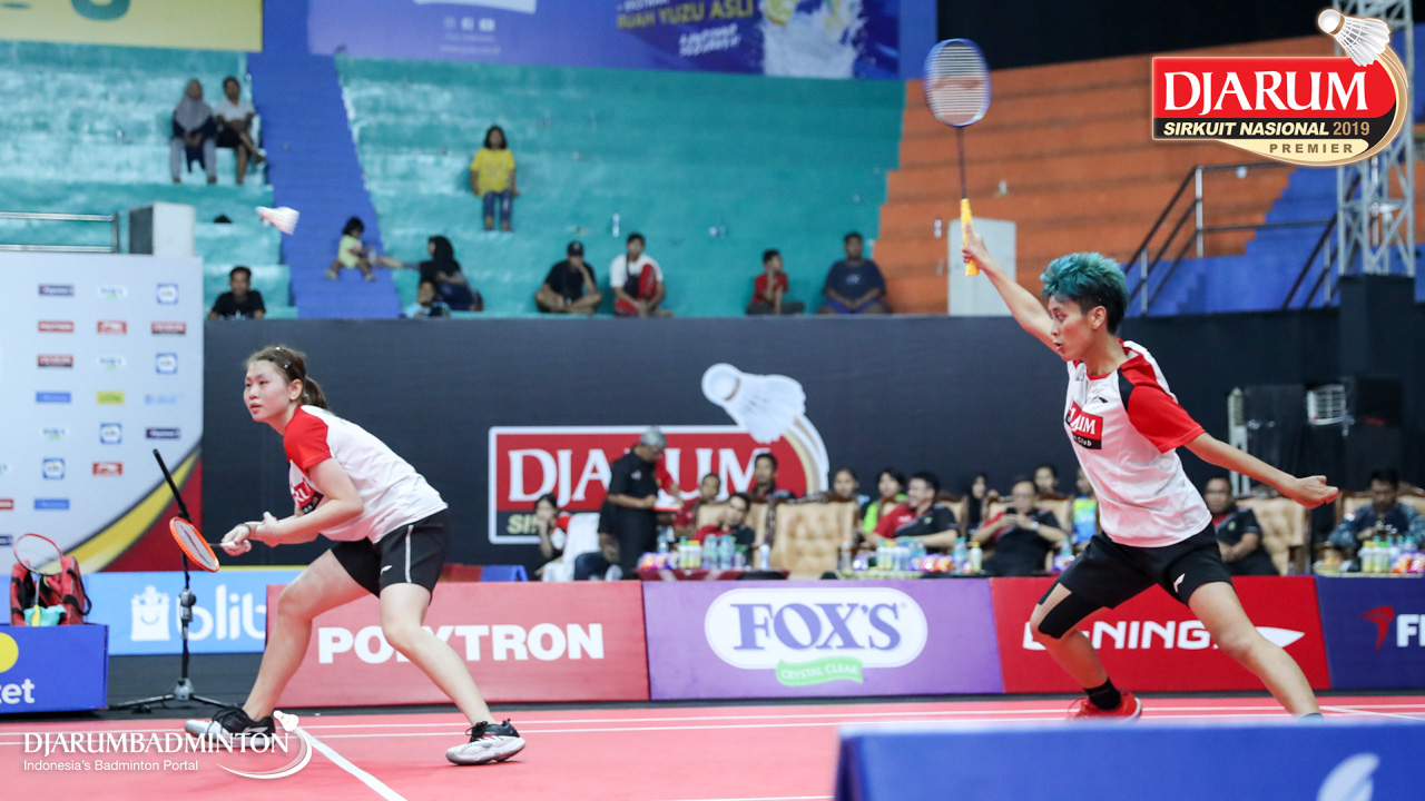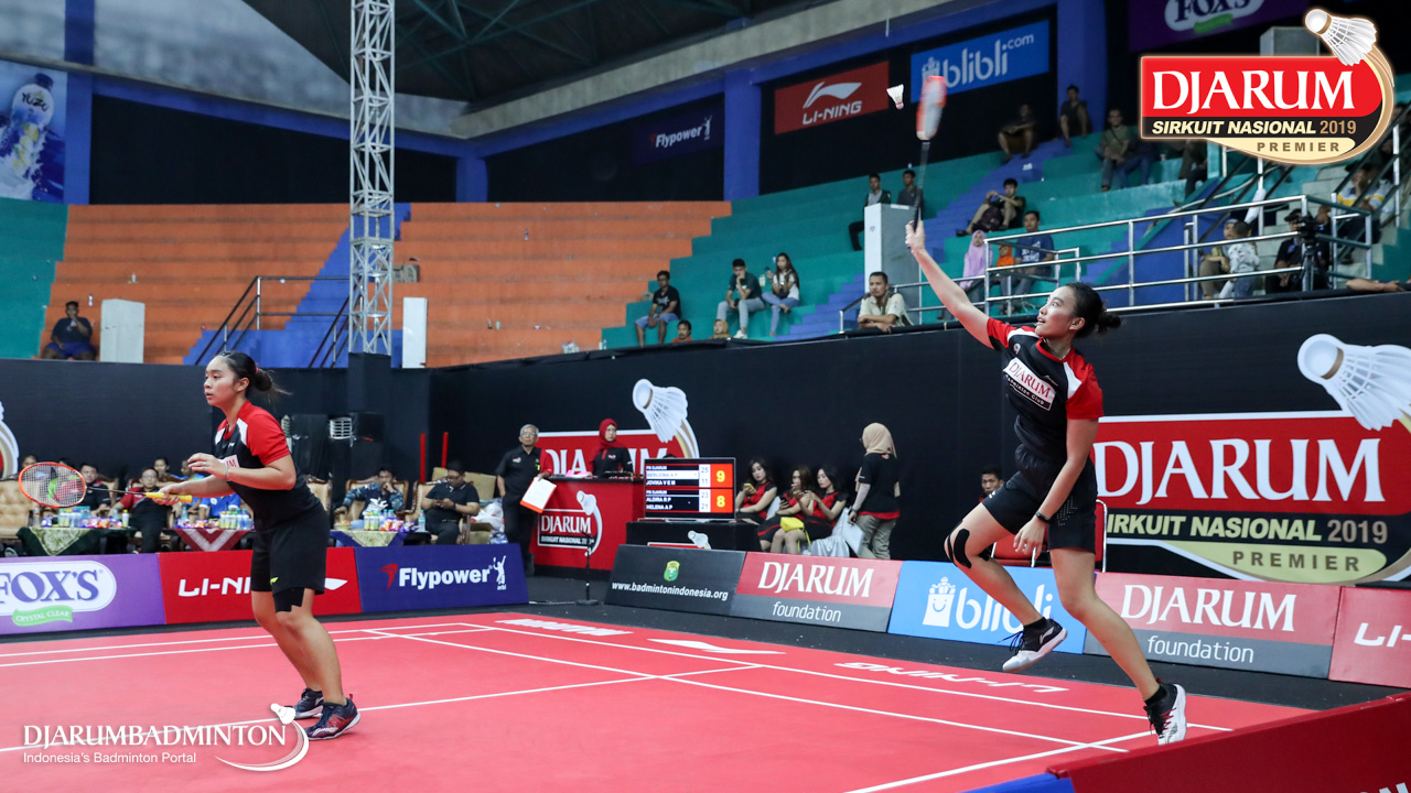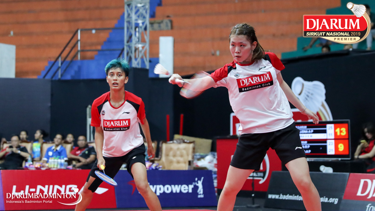 Berliona Alma Pradisa+Jovika Vandaria Ester Matiho (PB Djarum, Kudus) menyambar pengembalian
