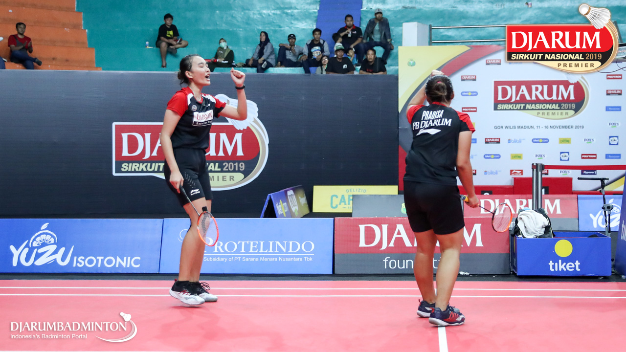 Selebrasi kemenangan Berliona Alma Pradisa+Jovika Vandaria Ester Matiho (PB Djarum, Kudus)