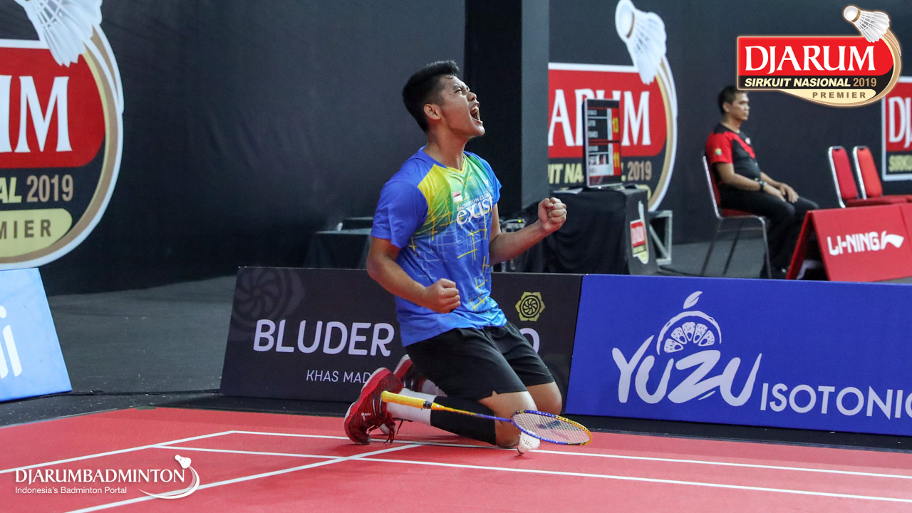 Selebrasi kemenangan Muhammad Iqbal (Exist Badminton Club)