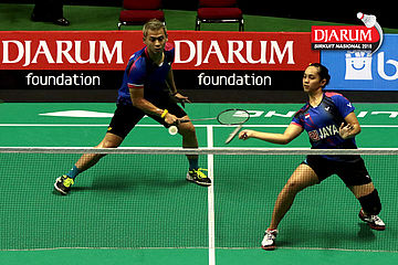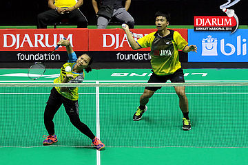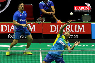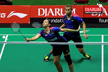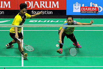 Rizko Asuro/Nadiya Melati (Pertamina Fastron) Mengembalikan Shuttlecock